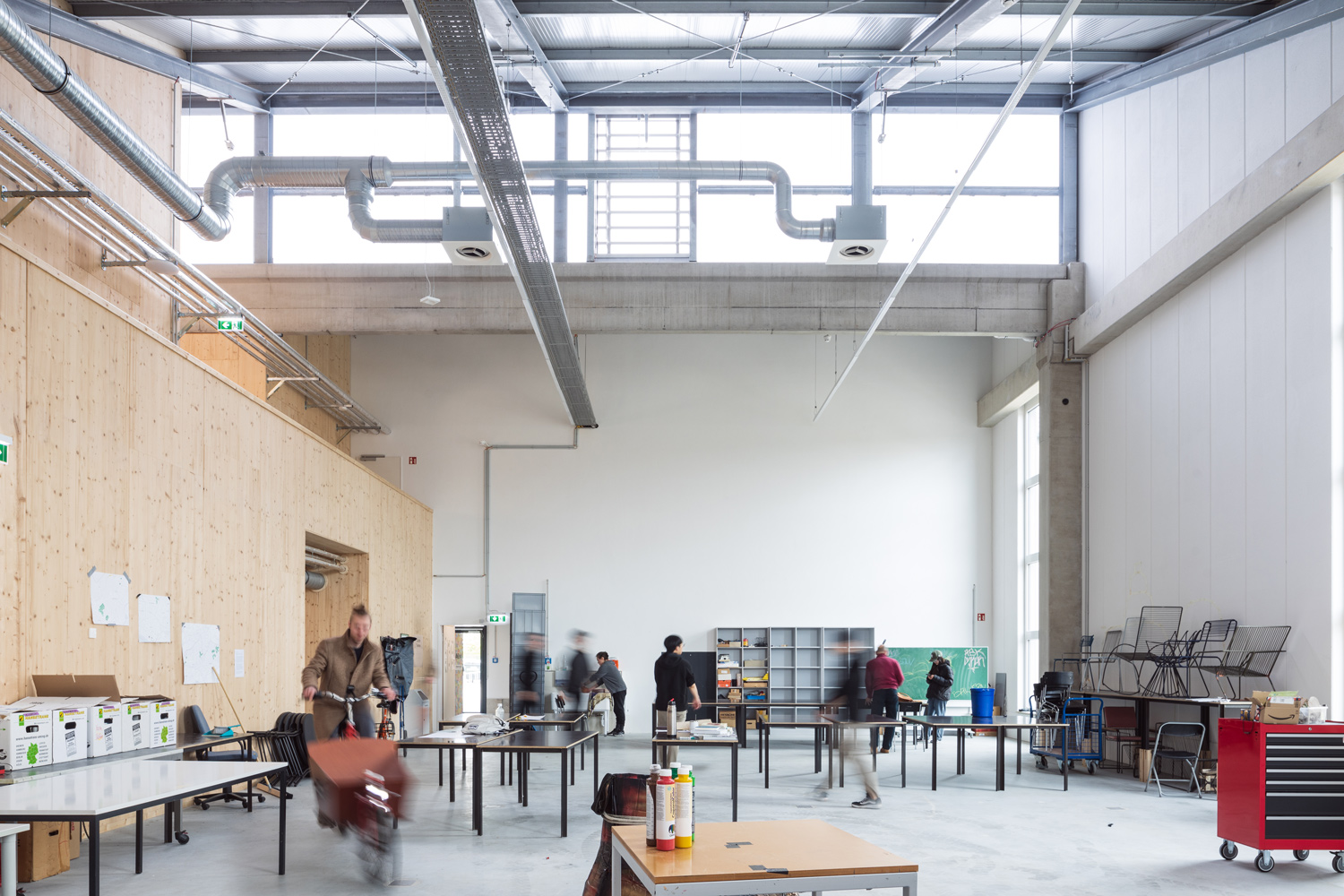 In enger Nachbarschaft entstehen Werkstätten, individuelle Arbeitsplätze sowie Ausstellungs- und Konzerträume, alles extrem flexibel und den jeweils aktuellen Bedürfnissen problemlos anzupassen. Es kann sich ein gestalterisches Labor entwickeln.