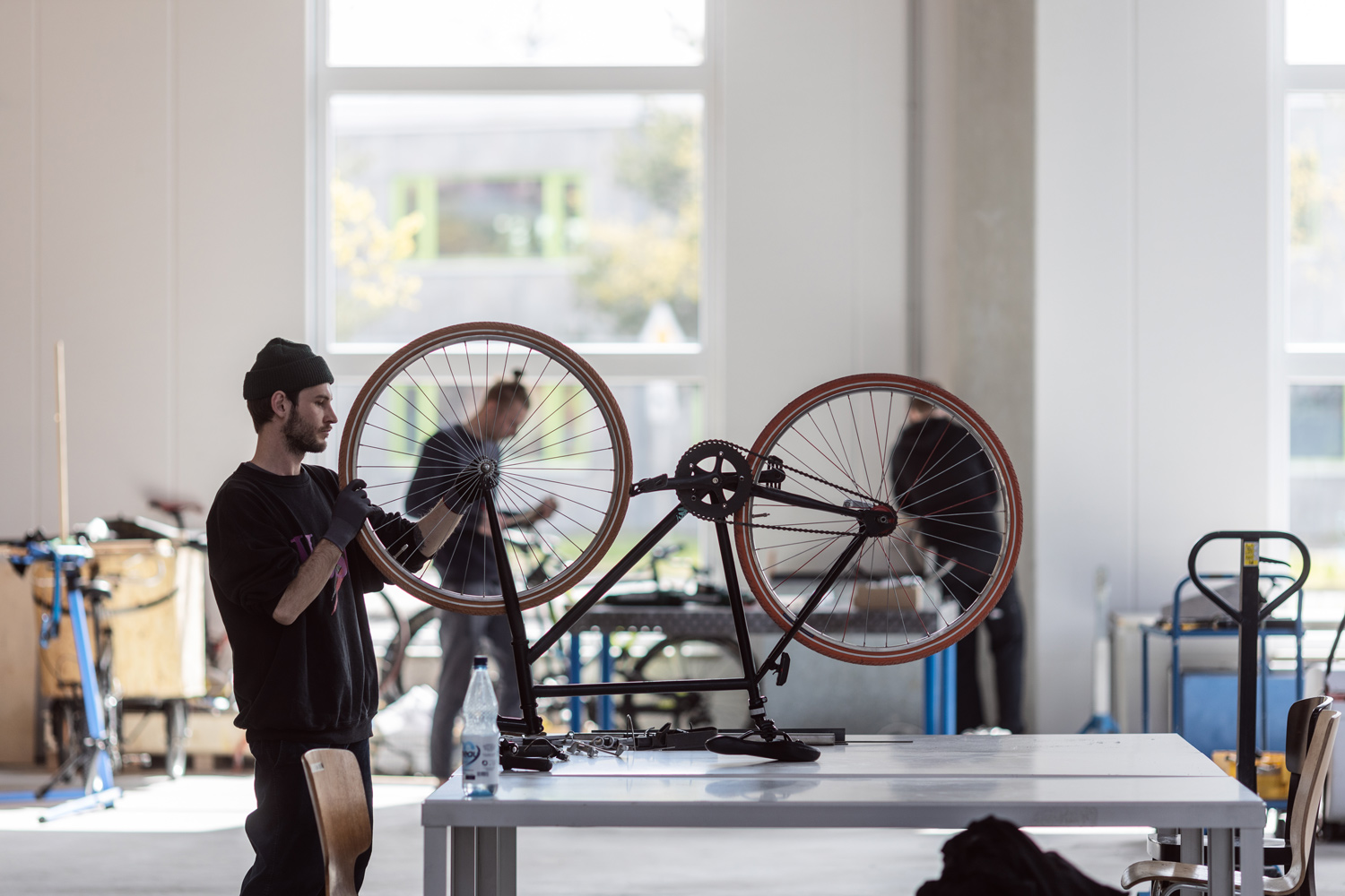 Das Lernen, Lehren, Arbeiten und Experimentieren im Speicher XI A hat bereits begonnen. Drei Professor:innen der der HfK Bremen werden in den kommenden drei Jahren mit ihren Klassen in den Speicher XI A bereichern. Bereits eingezogen sind Ingo Vetter (Professor für Bildhauerei mit klassischen Werkstoffen) und Alexander Sahoo (Professor für Grundlagen der Gestaltung). Noch dazugesellen wird sich Füsun Türetken (Professorin für Design and the Future). Gemeinsam ist ihnen allen das Thema der Materialität, das im Speicher XI A aus verschiedenen Blickwinkeln betrachtet wird – von der Konstruktion von Lastenfahrrädern, über das Produktdesign bis hin zu Skulpturen.